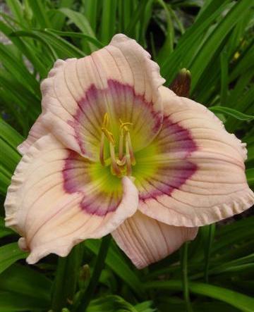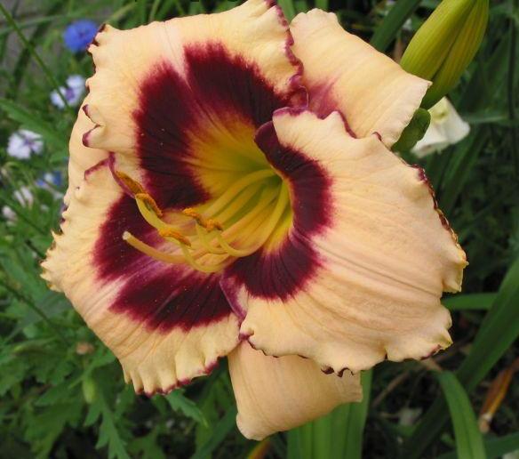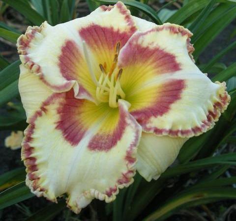 Отдельно располагают лилейники с глазком с центре цветка. Эти сорта часто имеют ещё и гофрированную кайму по краю лепестков.