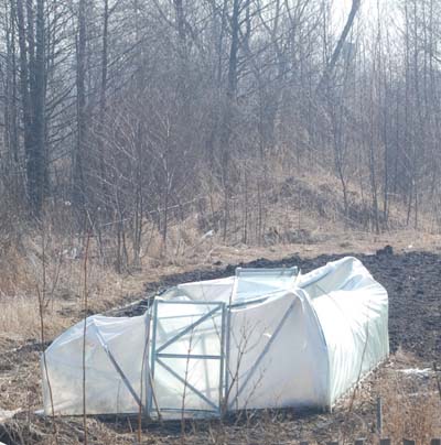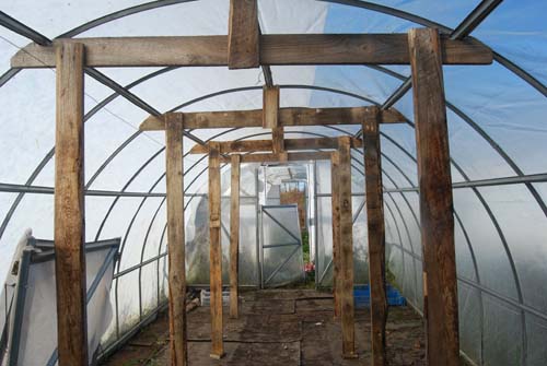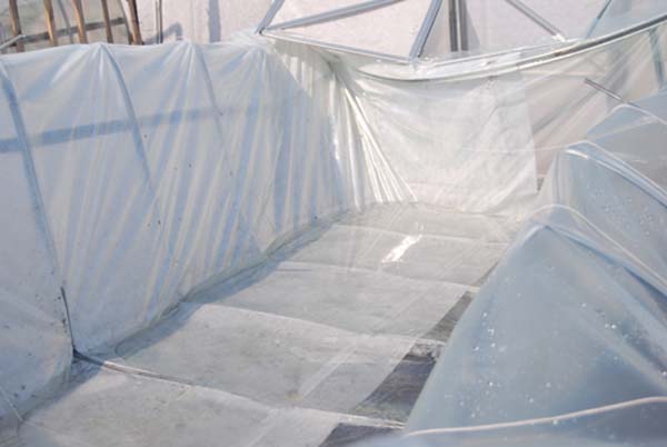 Конечно, скажете вы, сняли плёнку и нет никаких проблем с сохранением теплицы зимой. Мы так и делаем. С тех теплиц, где у нас происходит черенкование древесно-кустарниковых растений, мы снимаем плёнку. Укоренённые черенки прекрасно зимуют под снегом. Но часть теплиц оставляем под плёнкой, т.к. весной рано нам надо там размещать рассаду. У нас нет времени ждать, когда сойдёт снег, подсохнет земля. Нам надо начинать работать в теплицах задолго до того, как растает снег.