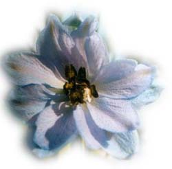 Цветок дельфиниума состоит из пяти лепестковидных чашелистиков, верхний из которых имеет воронковидный придаток - шпорец. Полумахровые и махровые цветки имеют два, три и более рядов лепестков. В центре цветка находятся тычинки и пестики, два воронковидных нектарника и две или более маленькие лепестковидные стерильные тычинки, называемые стаминодиями. Последние могут быть голыми или волосистыми, на них садятся насекомые, стремясь собрать нектар. Нектарники и стаминодии принято называть глазком. Он может быть белым, жёлтым, коричневым, чёрным, со штрихами другого цвета или, очень редко полностью повторять основную окраску лепестков. По форме различают плоские и пучковидные глазки.