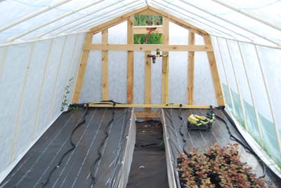 3. Земля покрывается чёрным нетканным материалом (плотность 60 г/кв.м), который предотвратит проникновение сорняков в теплицу.